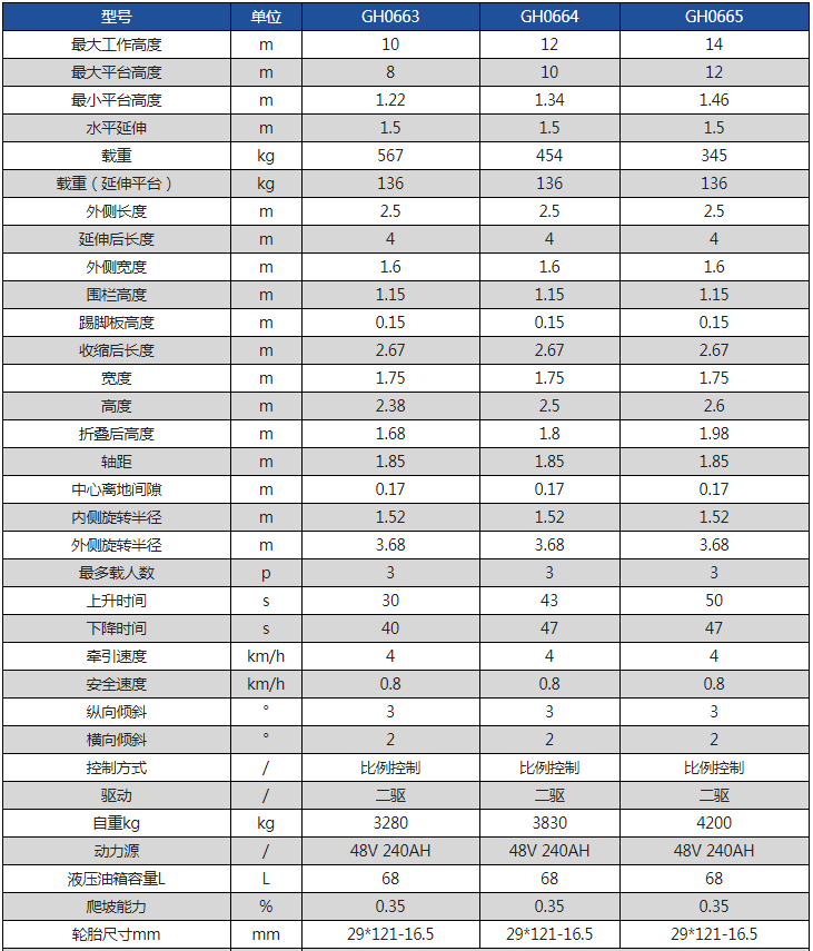 最大平臺高度:8000-12000mm 最高工作高度:10000-14000